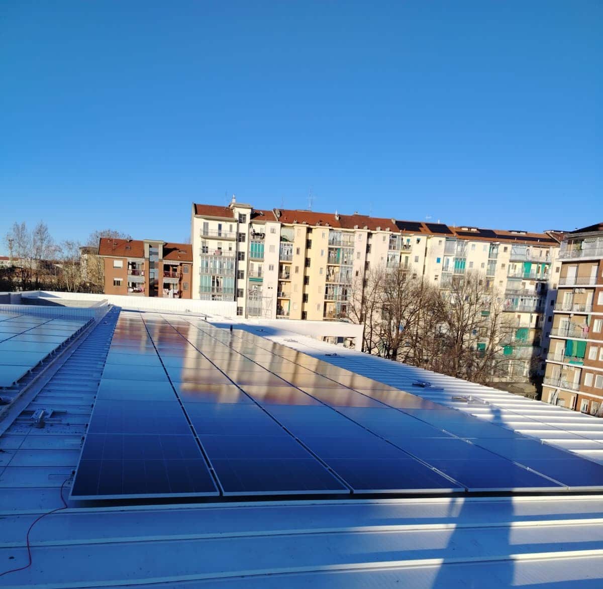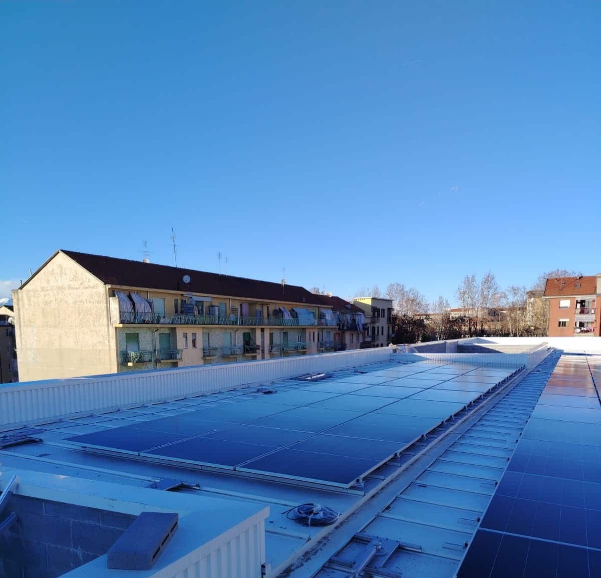 Sono stati utilizzati i nostri fissaggi per fotovoltaico per questo impianto fotovoltaico su tetto da 224 pannelli a Torino. Per non forare la copertura è stata utilizzata la pinza per fotovoltaico cod. 7390050 preassemblata.