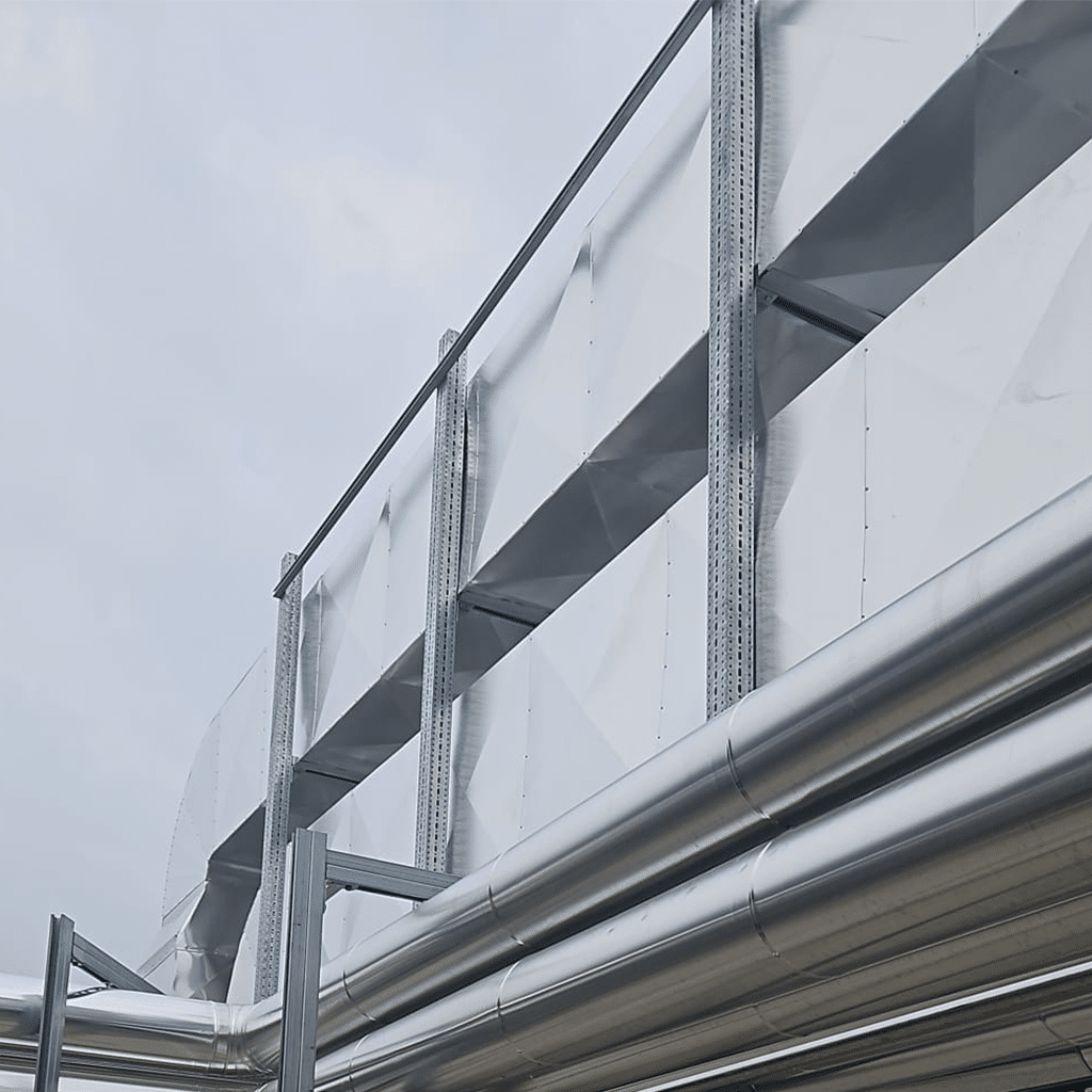 - Fissaggio: strutture modulari per condotte con profilo CorQUADRO 100×100