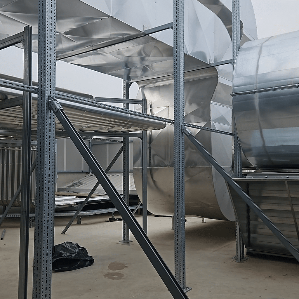 - Per la nuova palestra di Torino sono state realizzate delle strutture modulari utilizzando il profilo CorQUADRO 100×100 sul tetto per fissare le condotte d’aria e unità esterne.