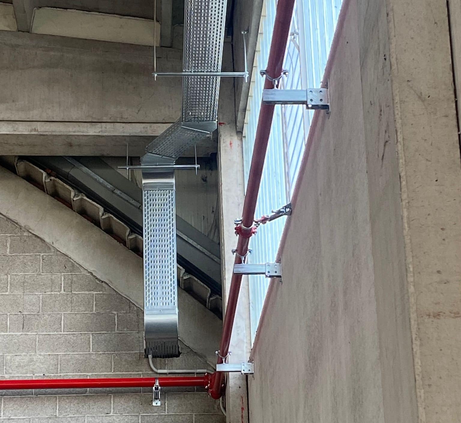 Per un nuovo capannone, abbiamo studiato e realizzato lo staffaggio statico e antisismico per l’impianto elettrico e per la rete di idranti.