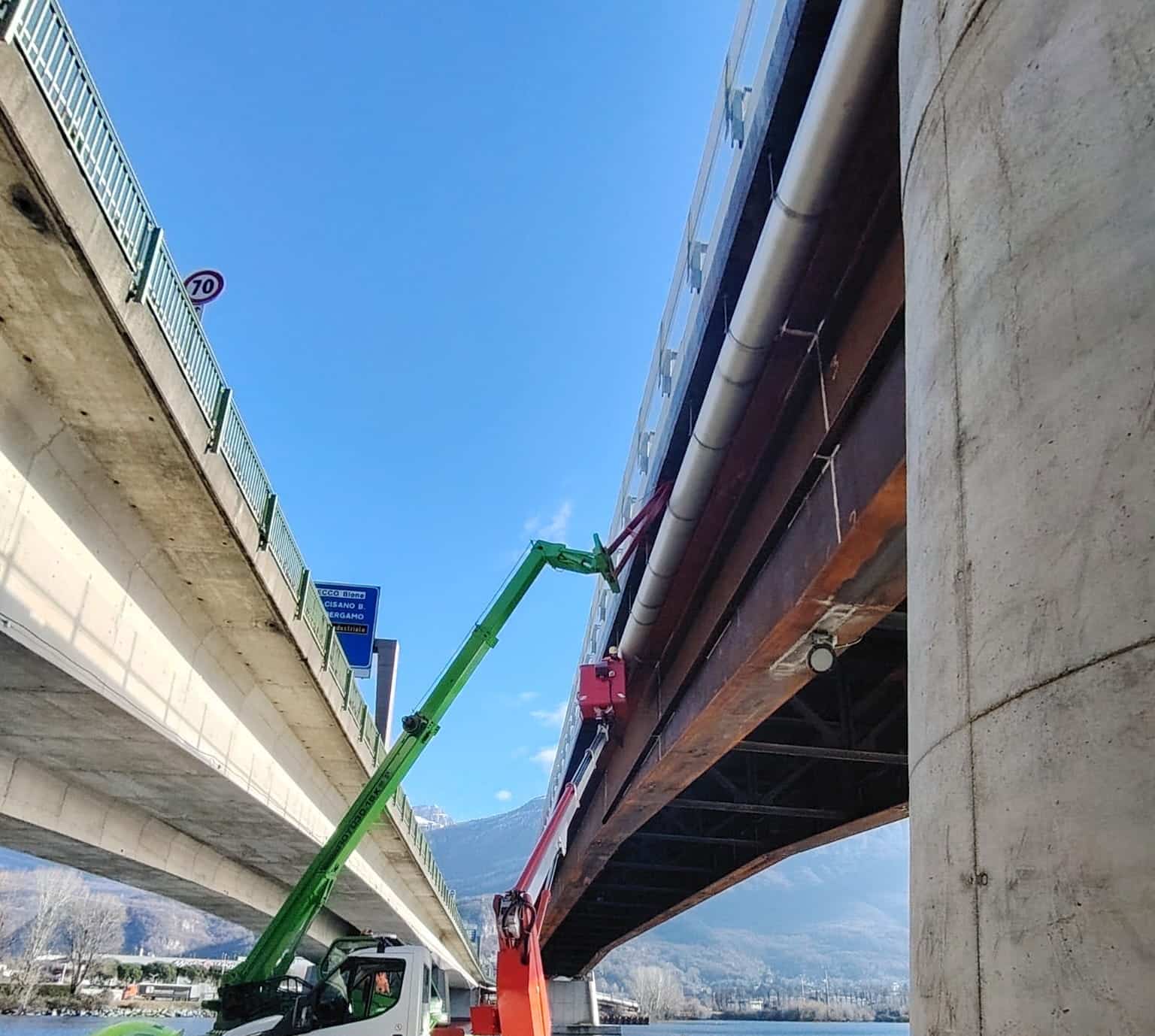 Lungo il nuovo ponte a Lecco passano più tubazioni, tutte sono state staffate con il materiale CORH in acciaio inox specifico per ponti e viadotti.