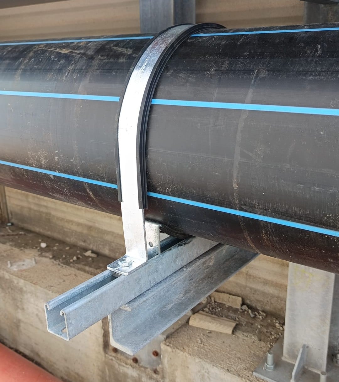 Staffaggio tubazione in plastica – Centrale termoelettrica in Sardegna