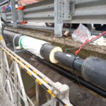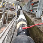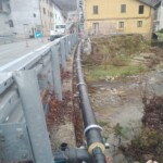 La tubazione lungo il ponte di una località sciistica è stata fissata alla parete tramite mensole CorSTRUT 41×41 lunghe 450 mm e rulli in poliammide da 200. I rulli in poliammide permetterano alla tubazione di dilatarsi e contrarsi senza vincoli e sono perfetti per tubazioni di materiale plastico.