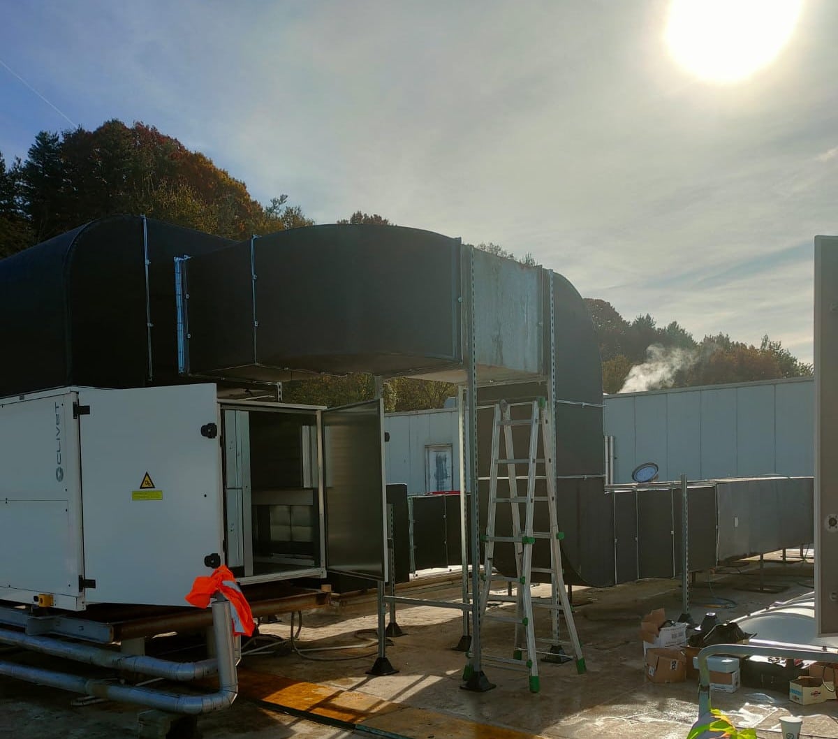 Struttura per tetti – fissaggio condotte d’aria in centro commerciale